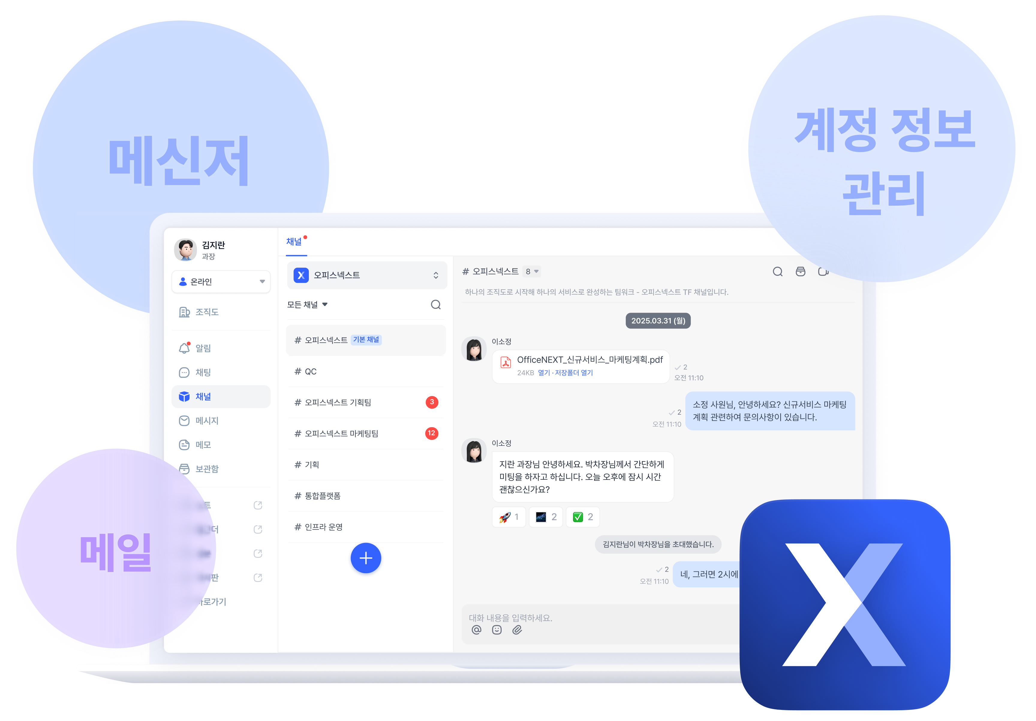 오피스넥스트는 메신저를 포함해 업무에 필요한 모든 기능을