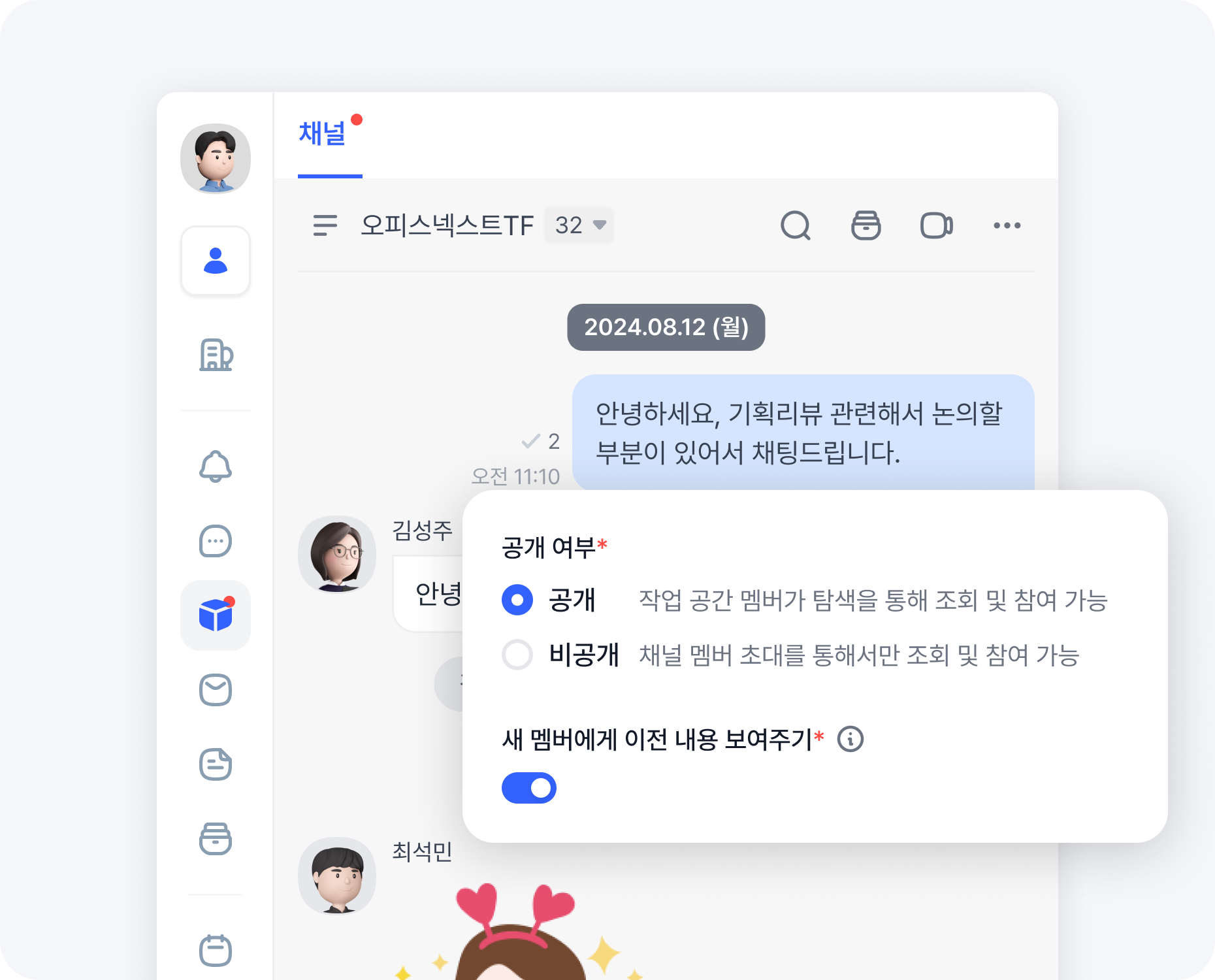 특정 프로젝트나 팀을 중심으로 소통하는 '채널'은