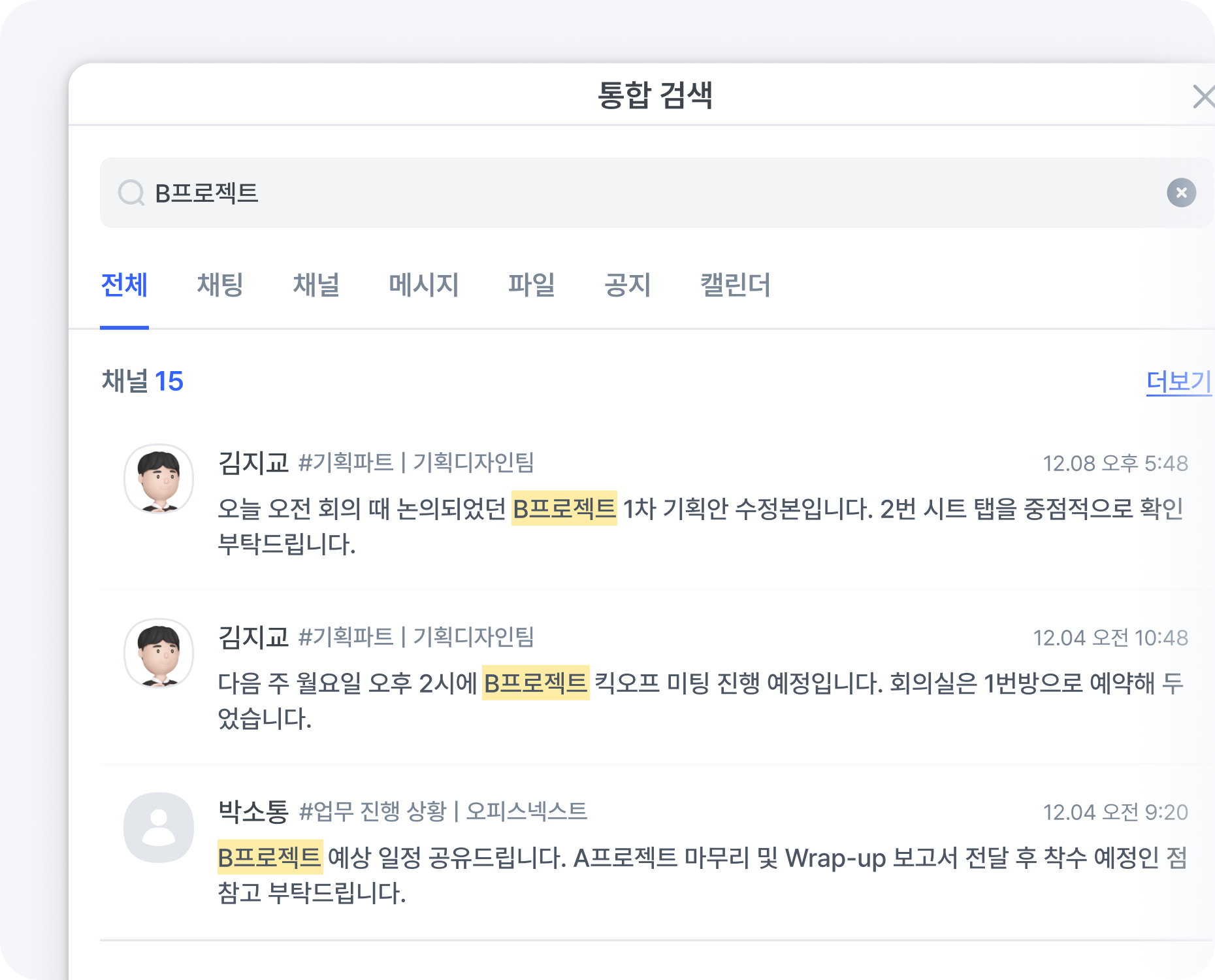 키워드 하나면 채팅·채널·메시지는 물론,