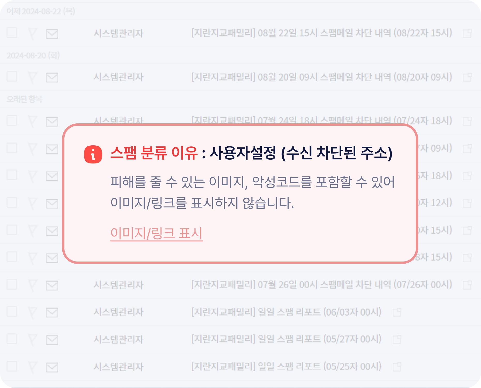 첨부된 파일의 미리보기 및 파일 저장을 제어할 수 있습니다. 모바일에서는 파일 저장과 미리보기를 차단하고, PC에서는 허용된 IP 대역 외에는 파일 저장과 미리보기를 차단할 수 있어 보안을 강화할 수 있습니다.