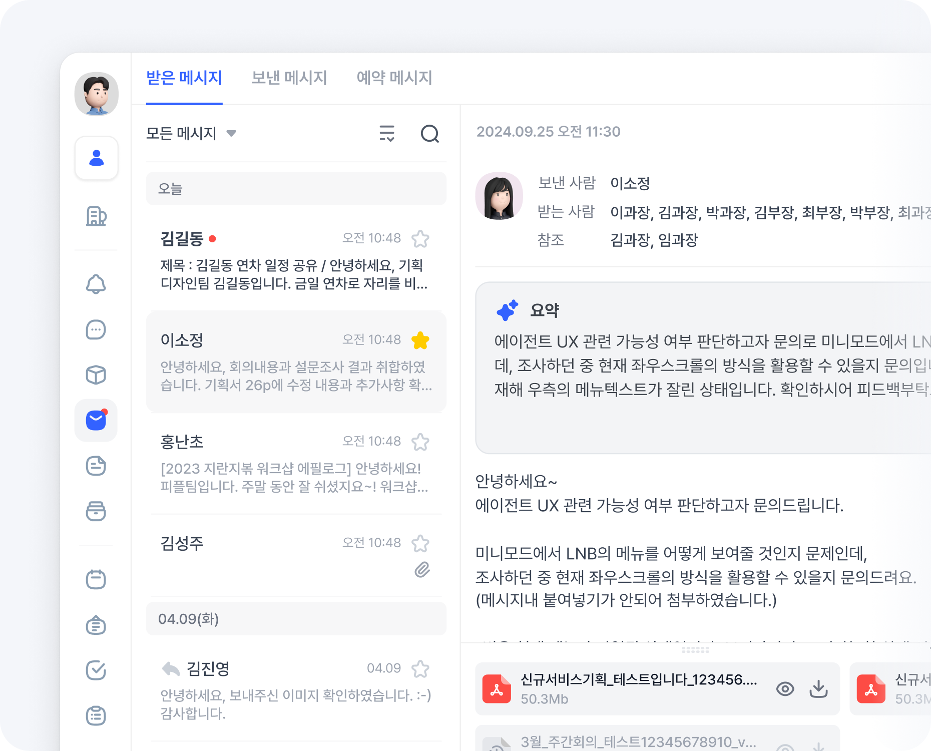 주고받은 파일명과 공지사항까지 빠르게 찾아줍니다.