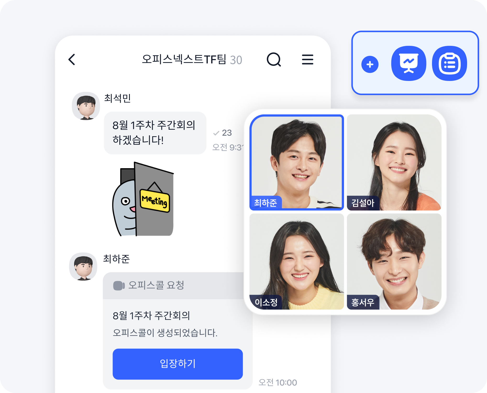 간단한 논의가 필요할 땐 채팅으로 소통해요.