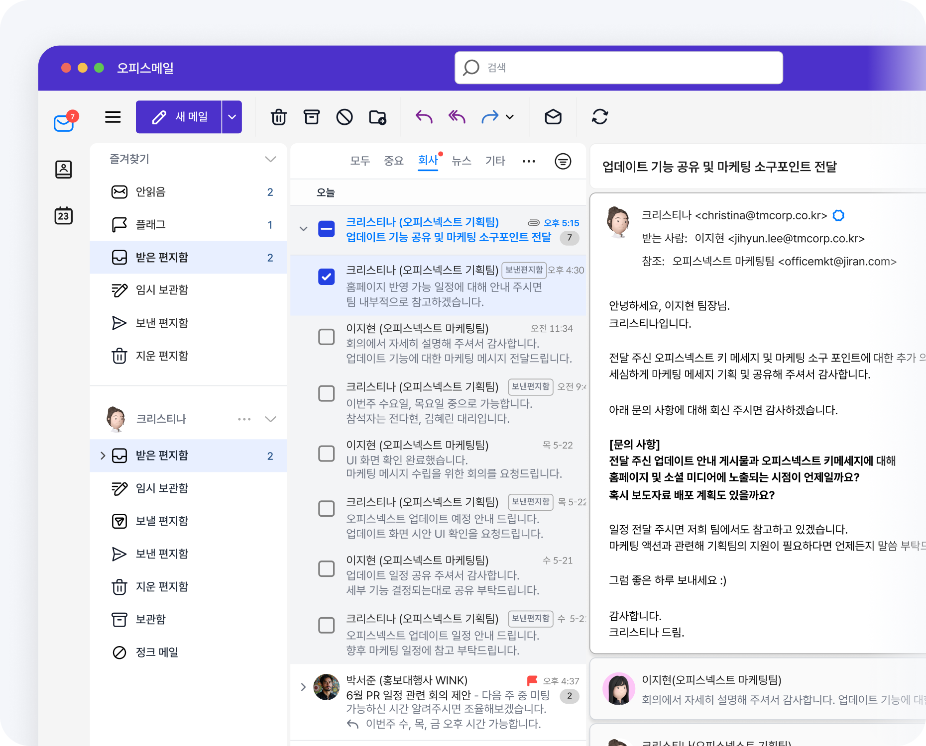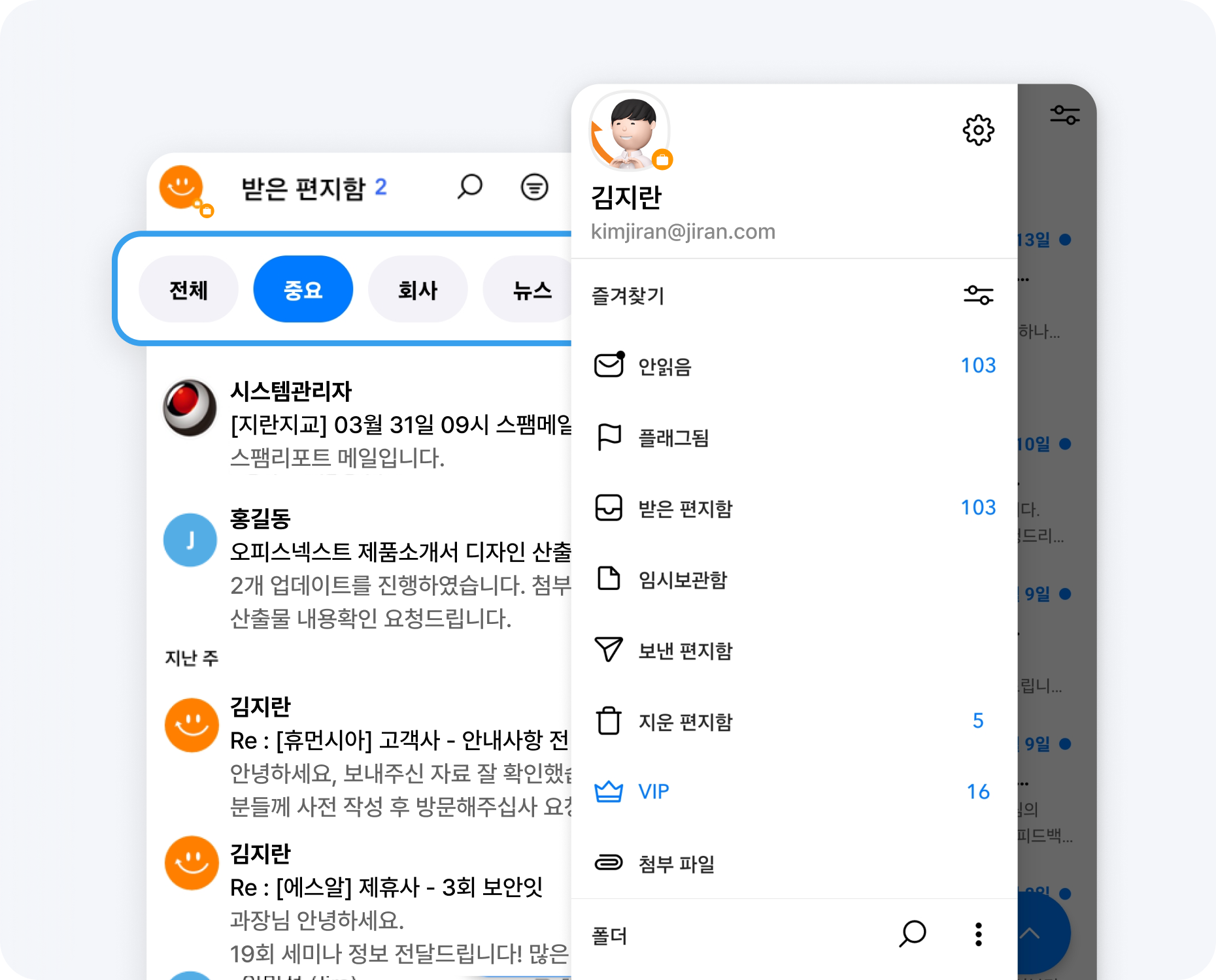 중요한 메일을 빠르게 확인하고 회신할 수 있어요.