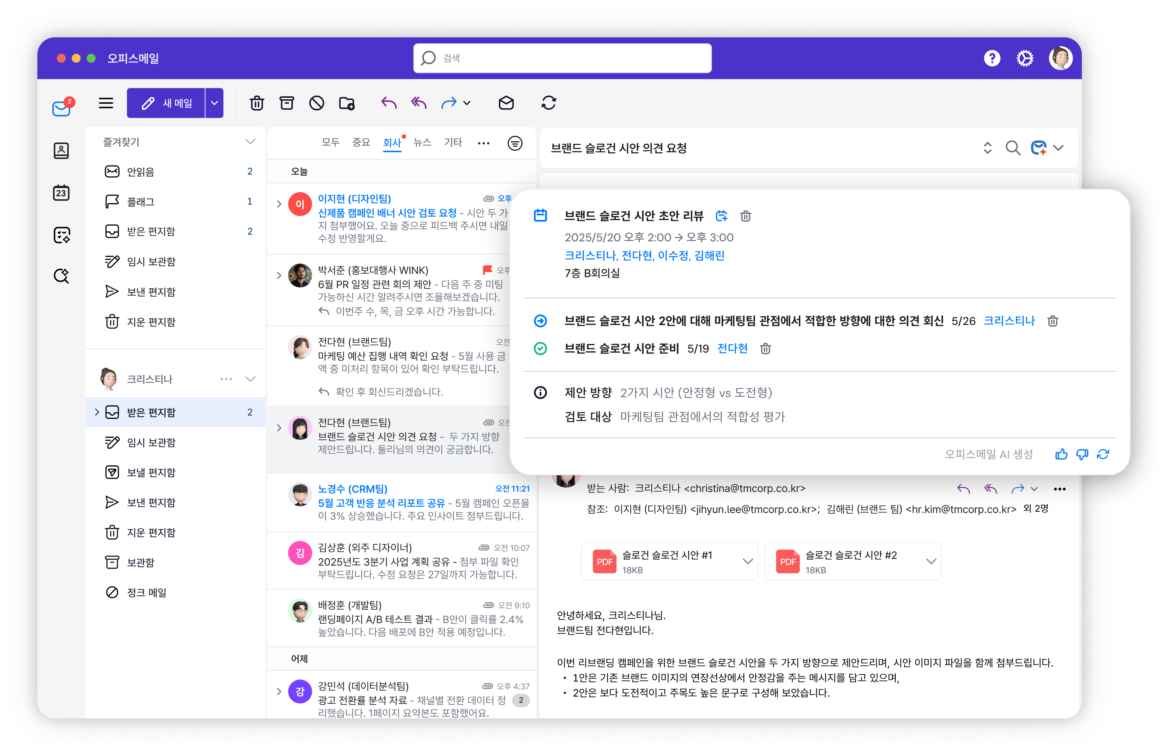 AI가 메일 제목과 내용을 자동으로 요약해드려요.