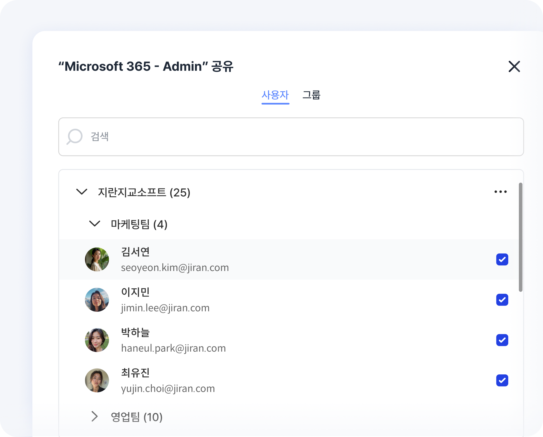 부서가 바뀌거나 퇴사하면 권한을 즉시 회수할 수 있습니다.