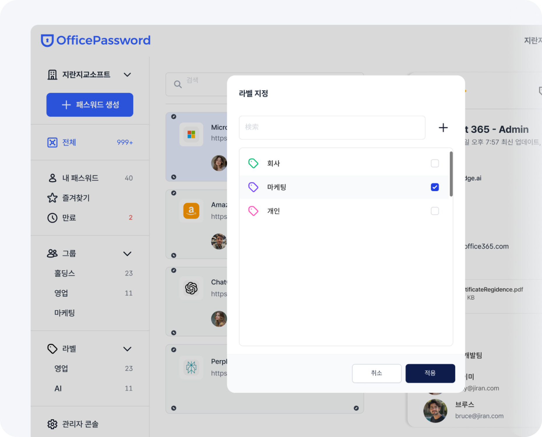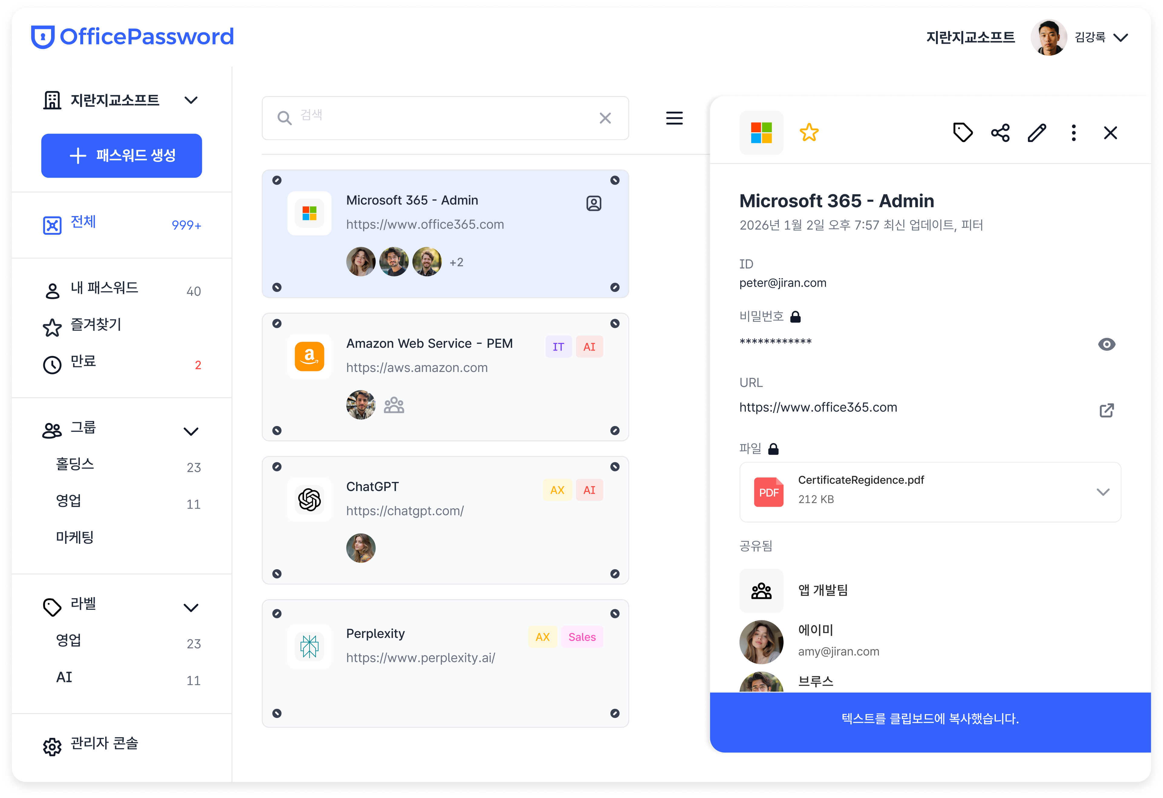 업무용 계정 정보를 한 곳에서 안전하게 보관합니다.